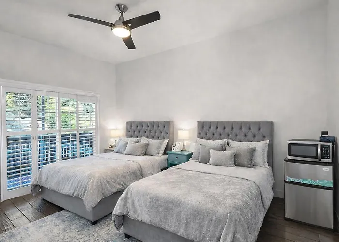 Parkway Calabasas Shopping Center ist knapp 2 Kilometer von der Villa entfernt, während der Warner Center Park Spielplatz knapp 2,1 Kilometer von hier entfernt liegt. Zu den nahe gelegenen kulturellen Sehenswürdigkeiten gehört der Los Angeles Pet Memorial Park (ist in einer Entfernung von 10 Fahrminuten von der Villa in Los Angeles).